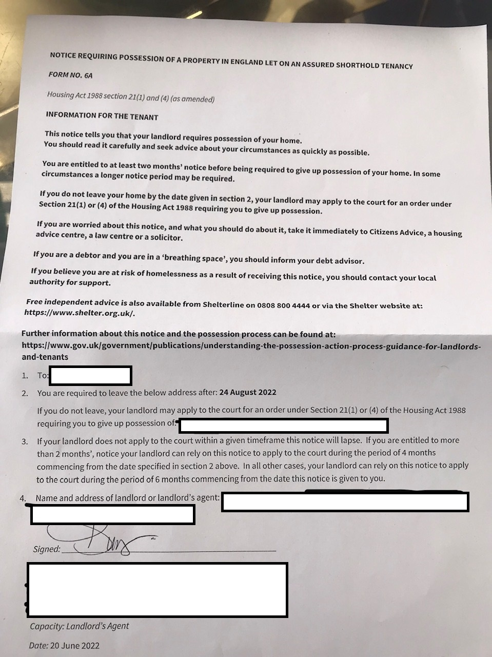 I received the letter S21 Notice 22/06/2022 with expiry date 24 August