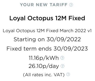 zzzt said:Those seem really cheap. I've been given a fix of 41.98p for standing charge and for 41.7p unit charge... which is 48% higher than the variable rate.And for gas they are offering something that is 60% above the variable rate. So I'll just go on Flexible Octopus... and then in October I suppose I'll have to prostitute myself to pay the bills.0