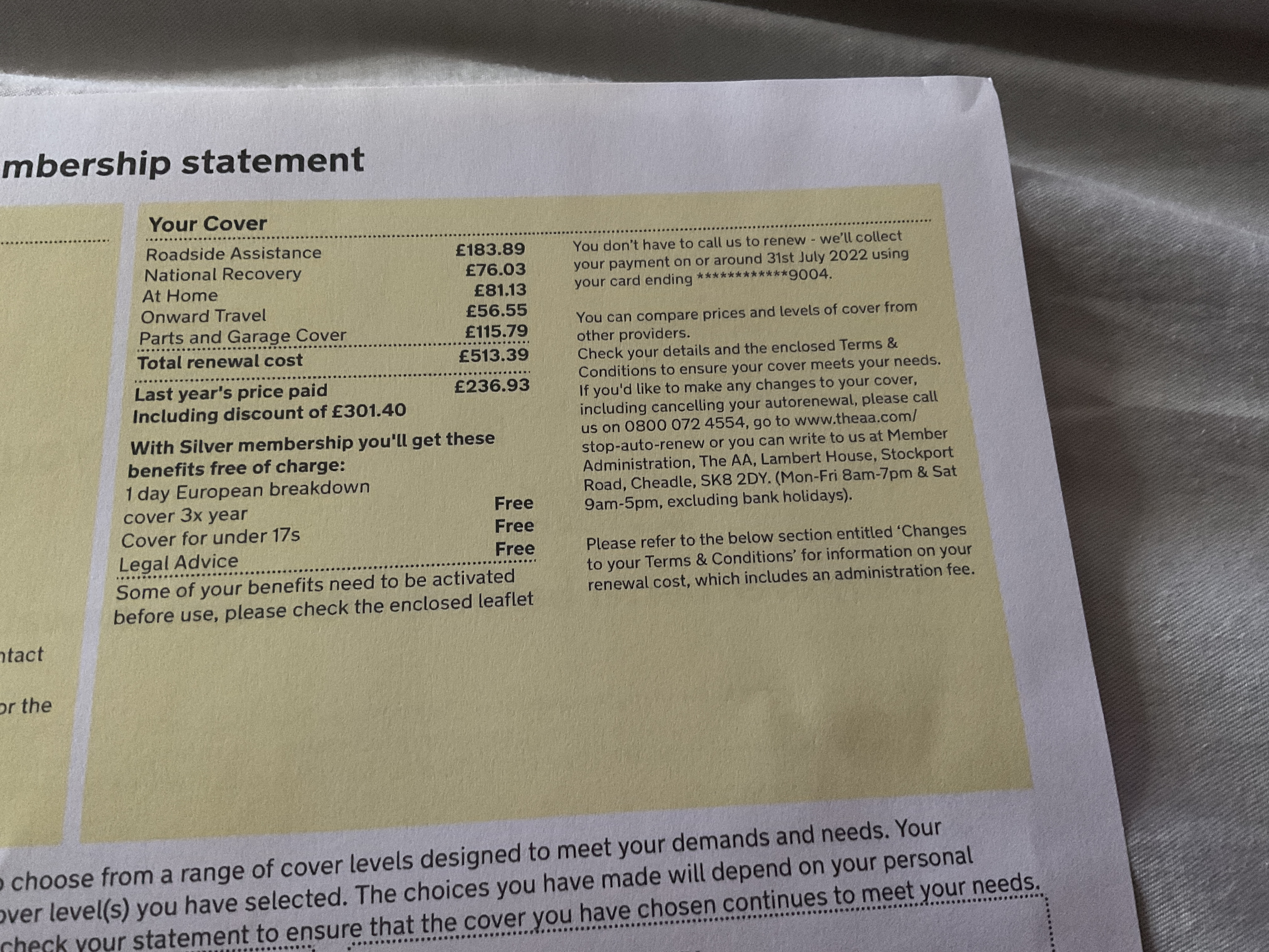 Obviously not paying that but I note that there is an attractive Cash Back on new membership to AA.