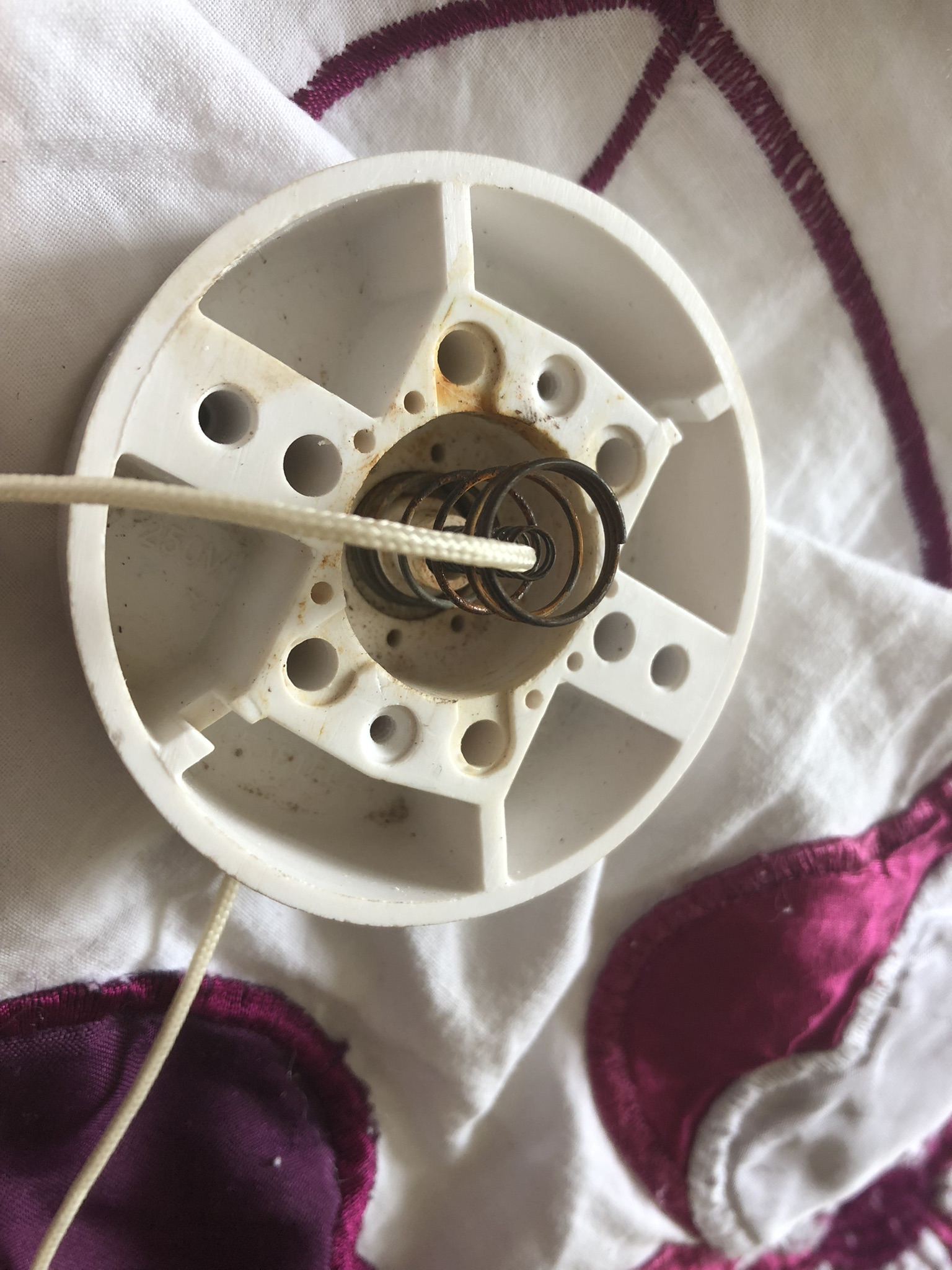 Now it doesn’t work. The problem is the pull cord rocker switch. I am wondering if this kind of light switch is generic because if it is I could just replace the bottom half of the fitting without getting involved in messing about with the electrics.