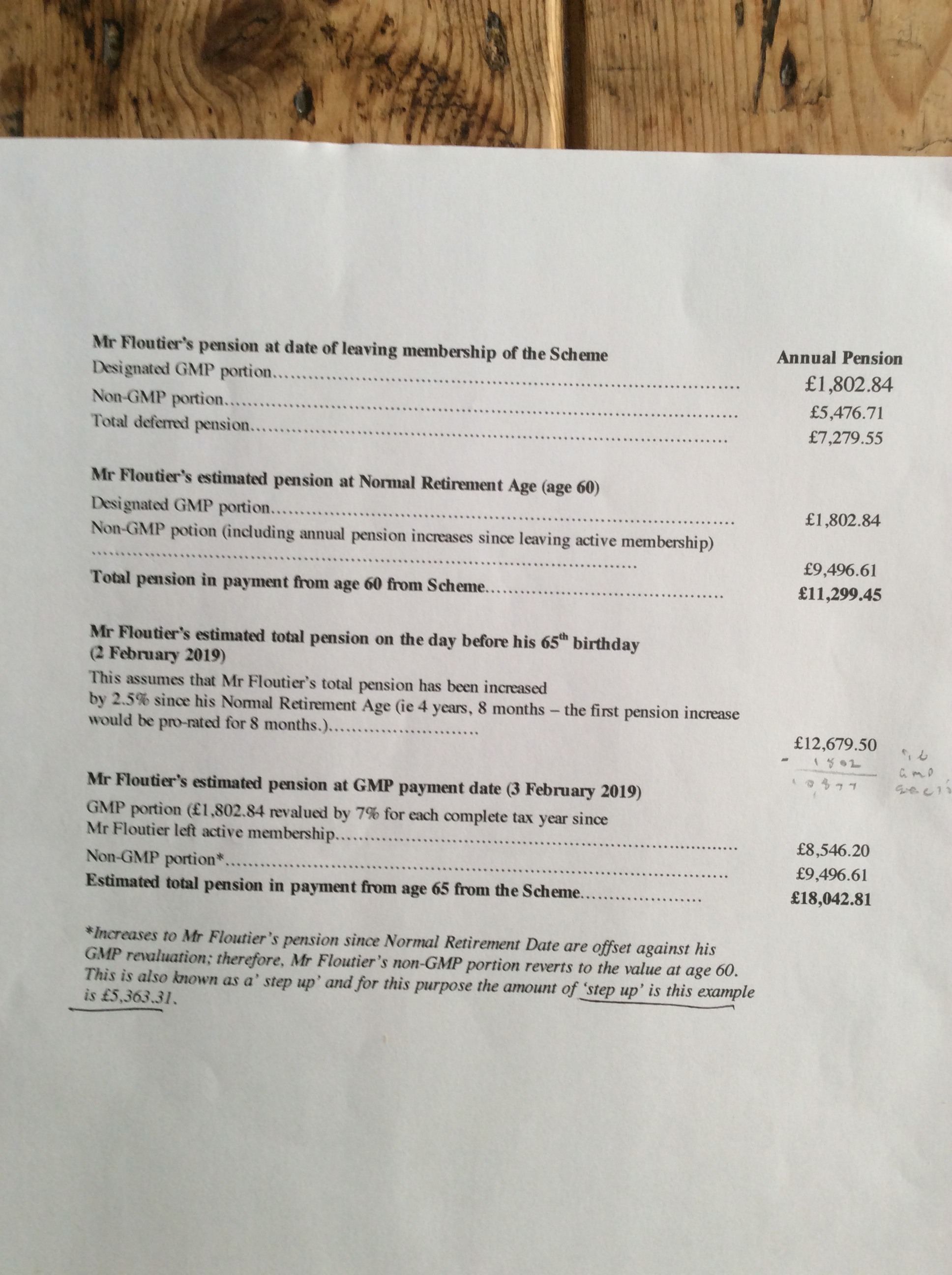 As we are equalising just part of the pension and do not have the original figures for the GMP earned it becomes more complicated but I wonder if I need to produce a ‘what if’ scenario as Mike Floutier did originally.