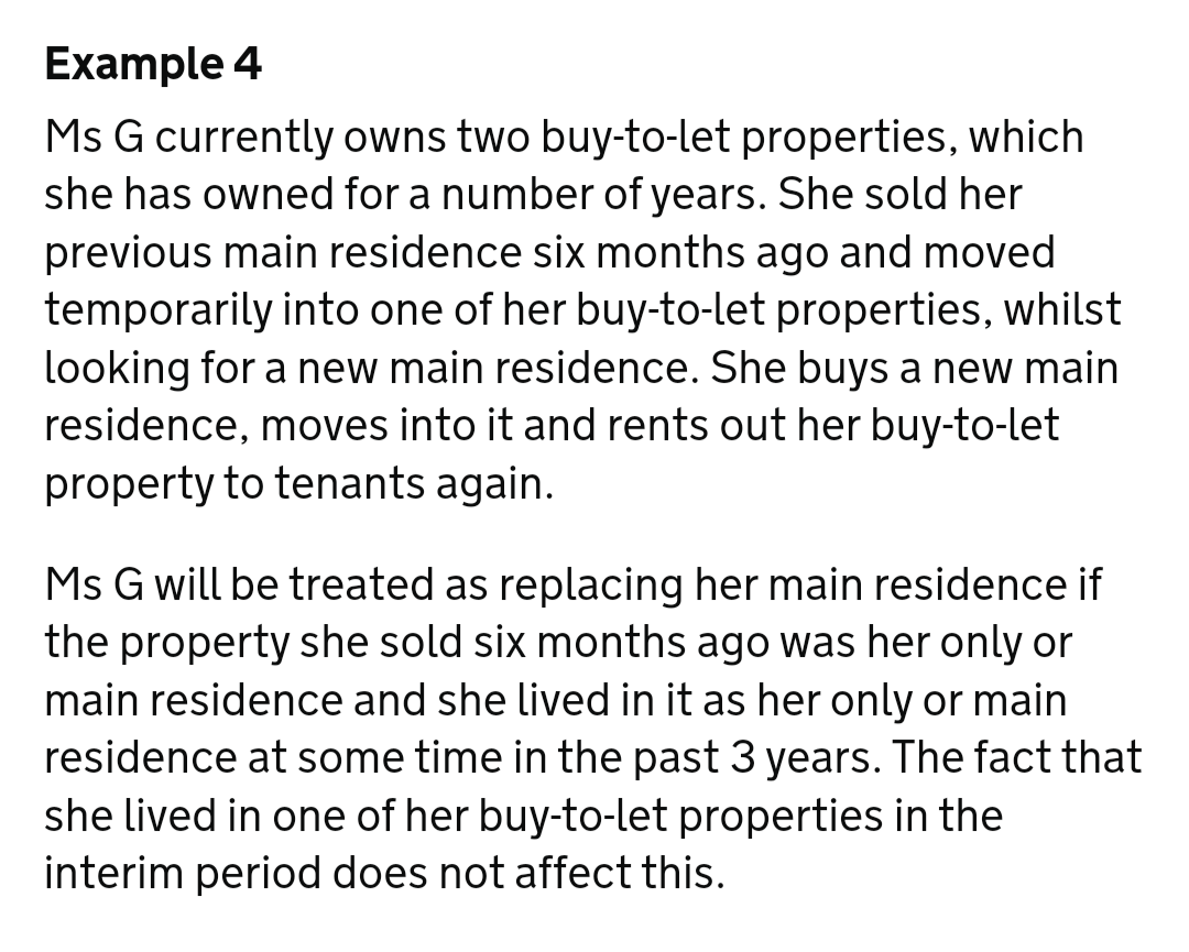 but going by the below example on the SDLT examples webpage, you should be able to use the replacement of main residence exemption even if you temporarily move into another property owned by you.