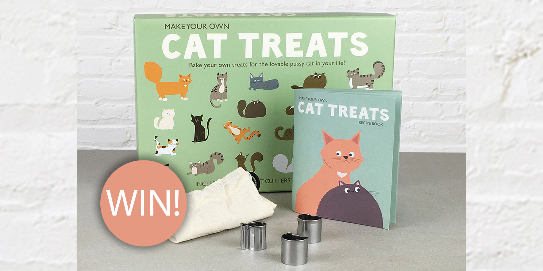 This charming little Make Your Own Cat Treats Kit includes three metal cutters, a cotton bag for storing treats, and a recipe booklet on how to make five yummy treats.
