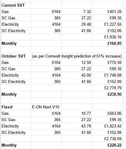 You've simply added 51% to the unit costs which is incorrect. The increase of 51% is the overall increase prediction based on the average home using the average amount of energy.Frap_Gadz said:I've been mulling this over myself so I ran the numbers based on the 51% increase predicted by Cornwall Insight and provided the increase isn't bigger than 51% and there isn't another jump in April it doesn't really make any sense to take this deal.