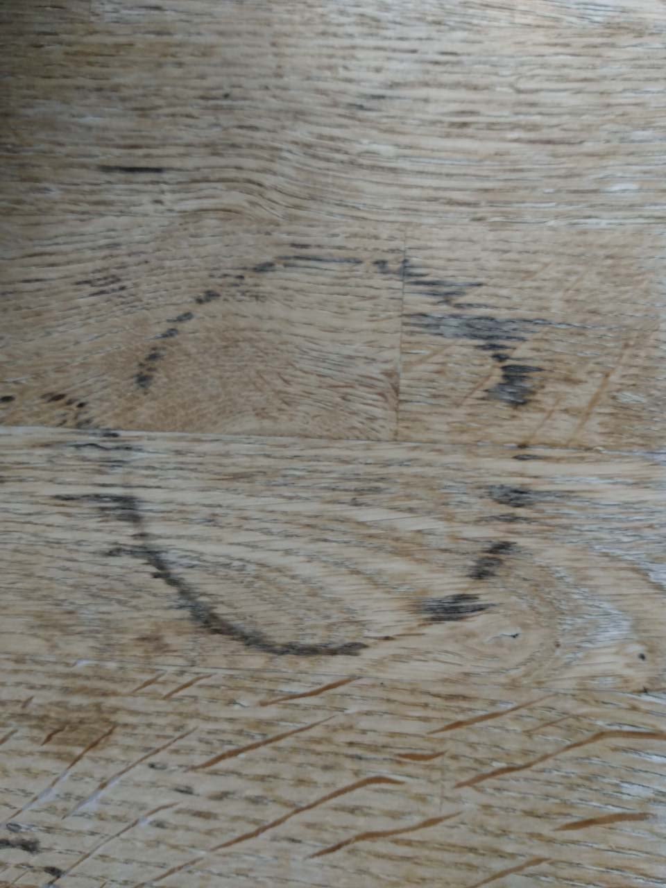 You mentioned "scrub and bleach out dark marks". Do you mean using actual bleach, or maybe something like HG Mould Spray? The worst marks on the worktop have been caused by wet cans being left on it. Here's a picture of the worst bit.