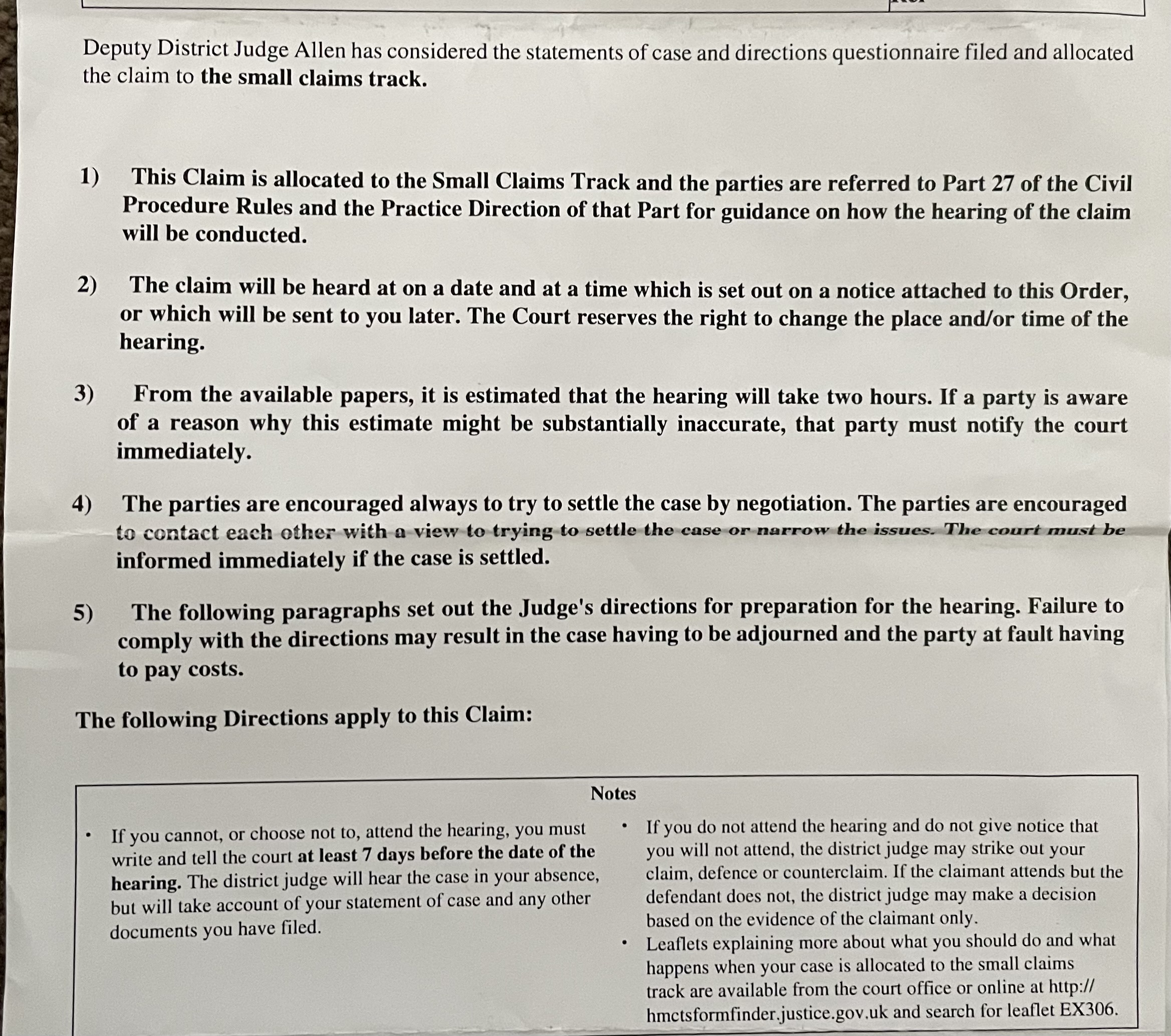 I think I have confused myself as I thought that the dispute hearing date in March 2023 was the actual final hearing.