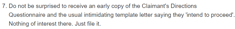 This morning ive received a letter from DCBL explaining their client intends to proceed with the claim.Which the Template Defence thread already tells you about, so it was fully expected and not something to take seriously or phone anyone about.