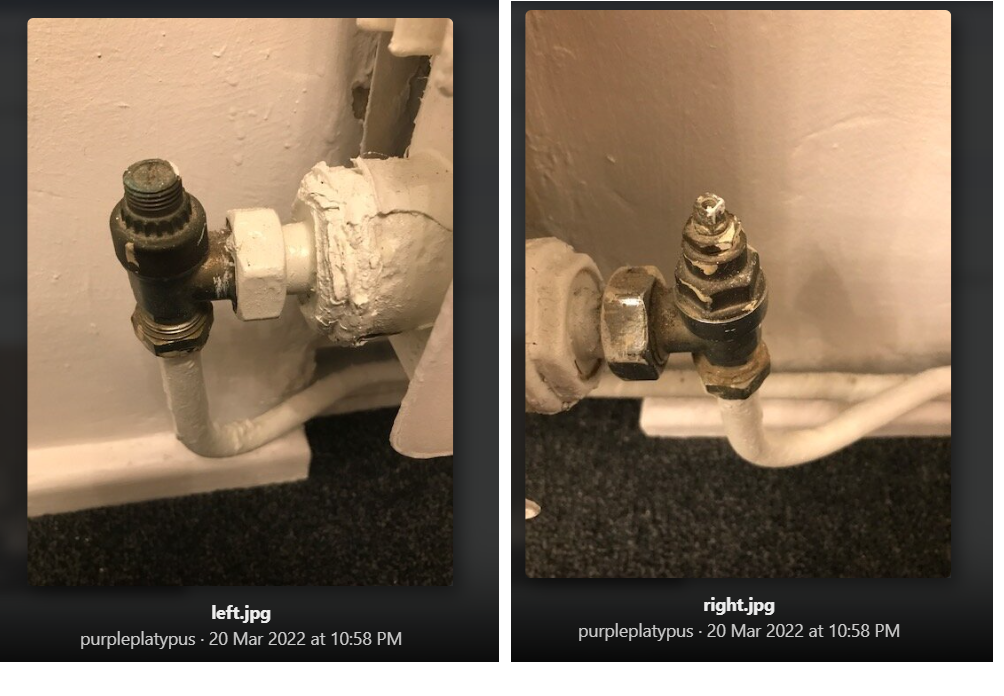 There will be at least one lockshield valve on a radiator - It may be hidden under a small plastic cap. Post a pic of both ends of the radiator, and we can tell you how to shut it off.ARenter said: The issue with the radiator is that it cannot be turned off - no thermostat, no valve, nothing