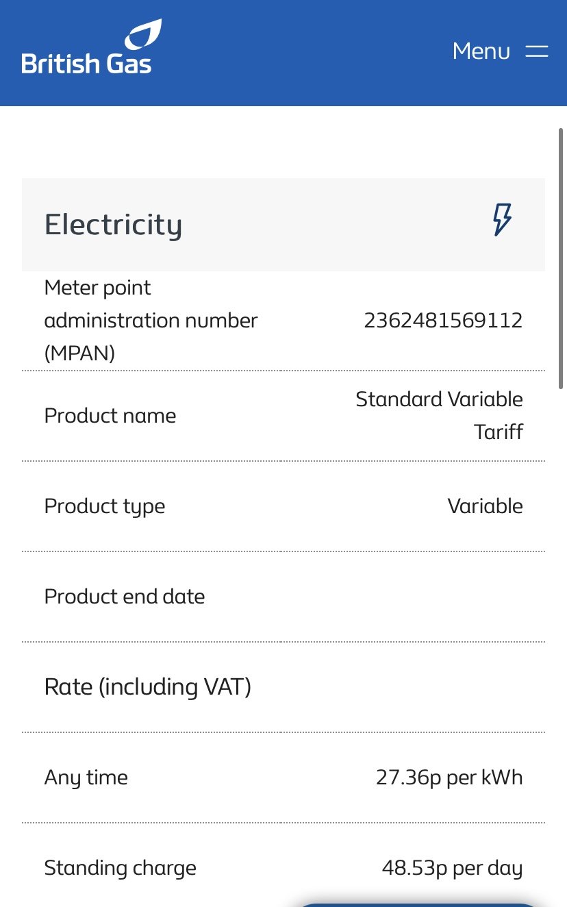 I’ve been offered the above tariff with BG. The rates of it are shown below, as well as what my standard variable rates are