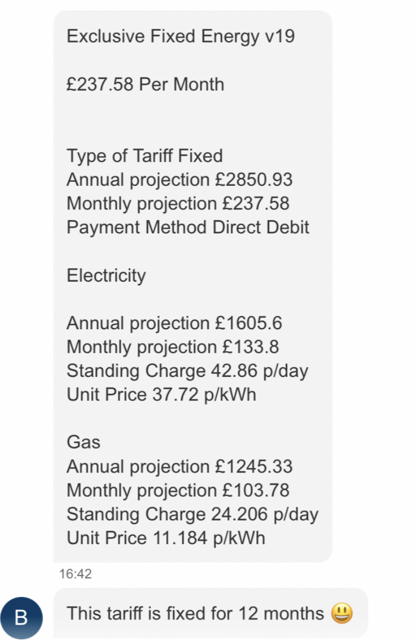 I’ve estimated my annual use currently is £2080 a year, and the fix offered will be £2850 a year.