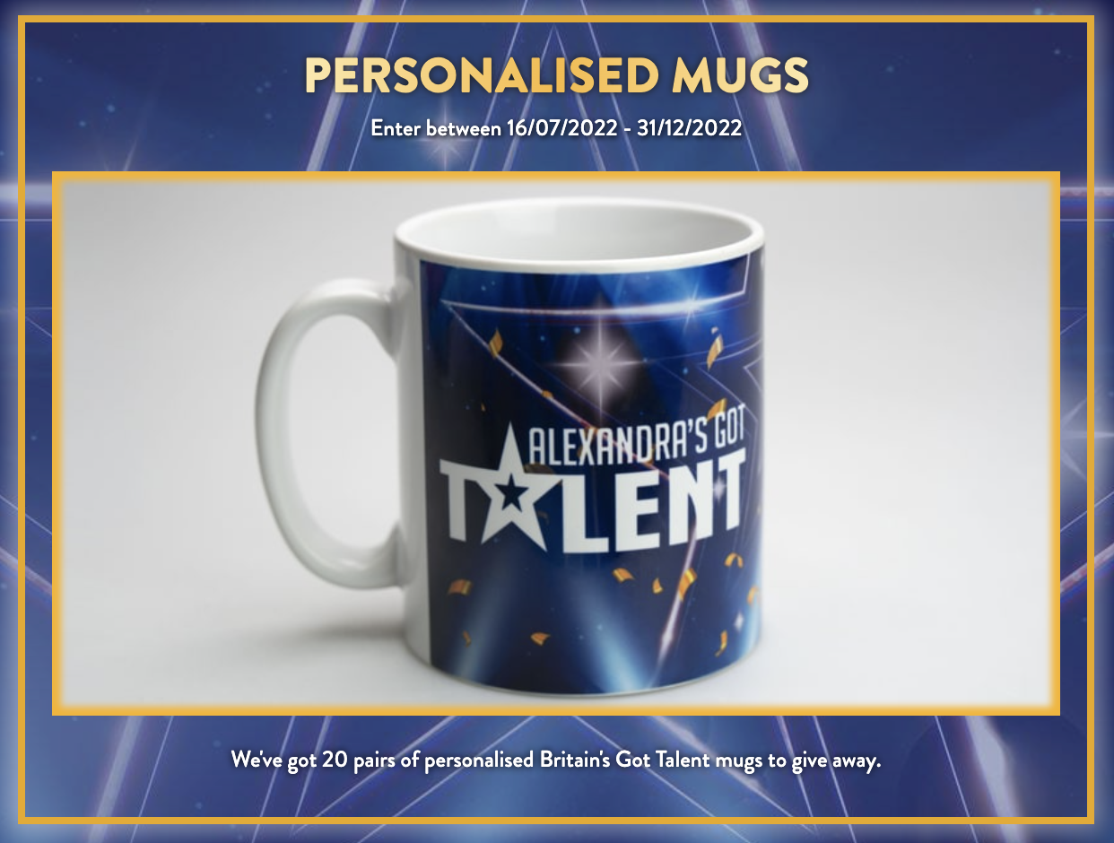 Enter to win 1 of 20 Pairs of Personalised Britain's Got Talent Mugs
