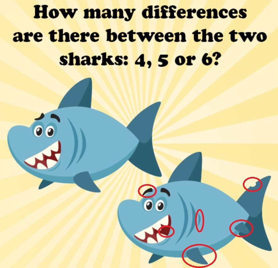 The easily missed one is the pectoral fin, which is much smaller on the lower shark.