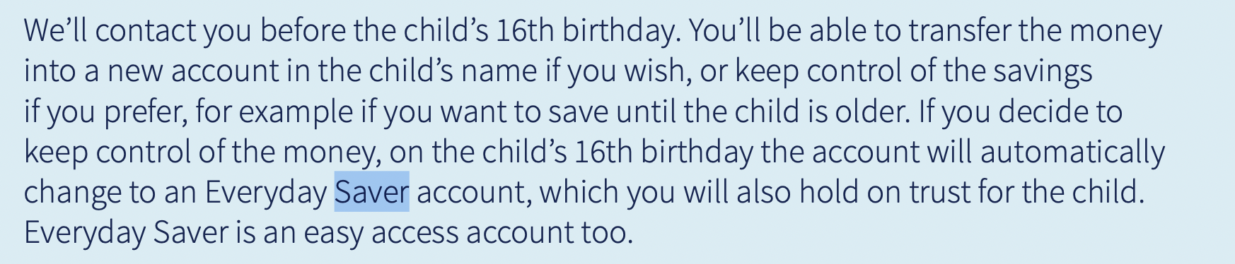 The below is ambiguous, and the bank didn't contact us. I wish they had. I don't really understand. They didn't put it in an Everyday saver either.