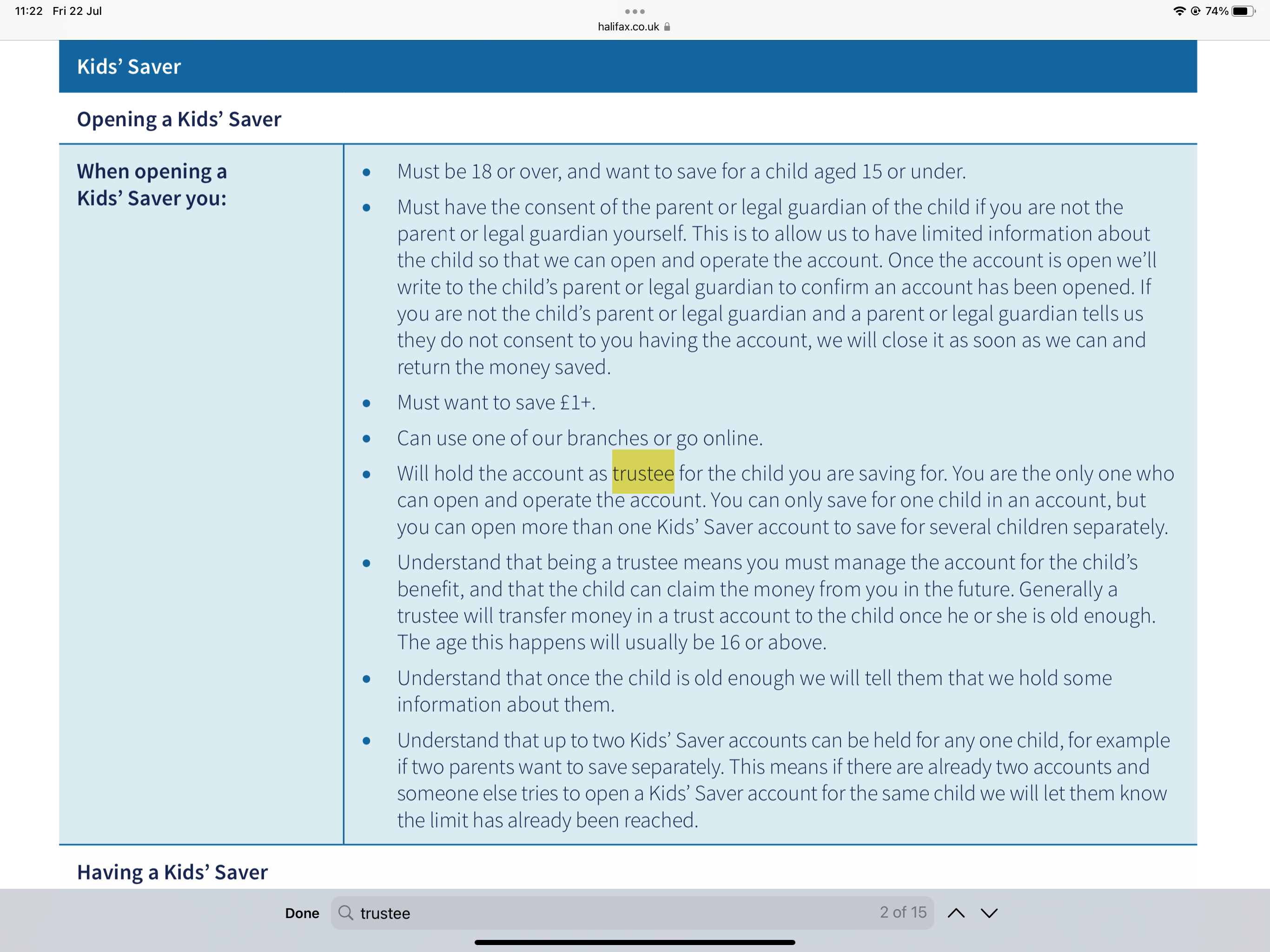 Do you mean that the parent was/is named as the trustee? If so, it's the child's account, see below. If it's genuinely a joint account then usually the money will be owned 50/50.Racheljaa said:Thanks Albermarle, they are in the name of the parent and the child, I'm asking the bank and they don't really know. It's so hard. I want to do the best for her, she is in such a bad place right now. I don't know where to get information from.