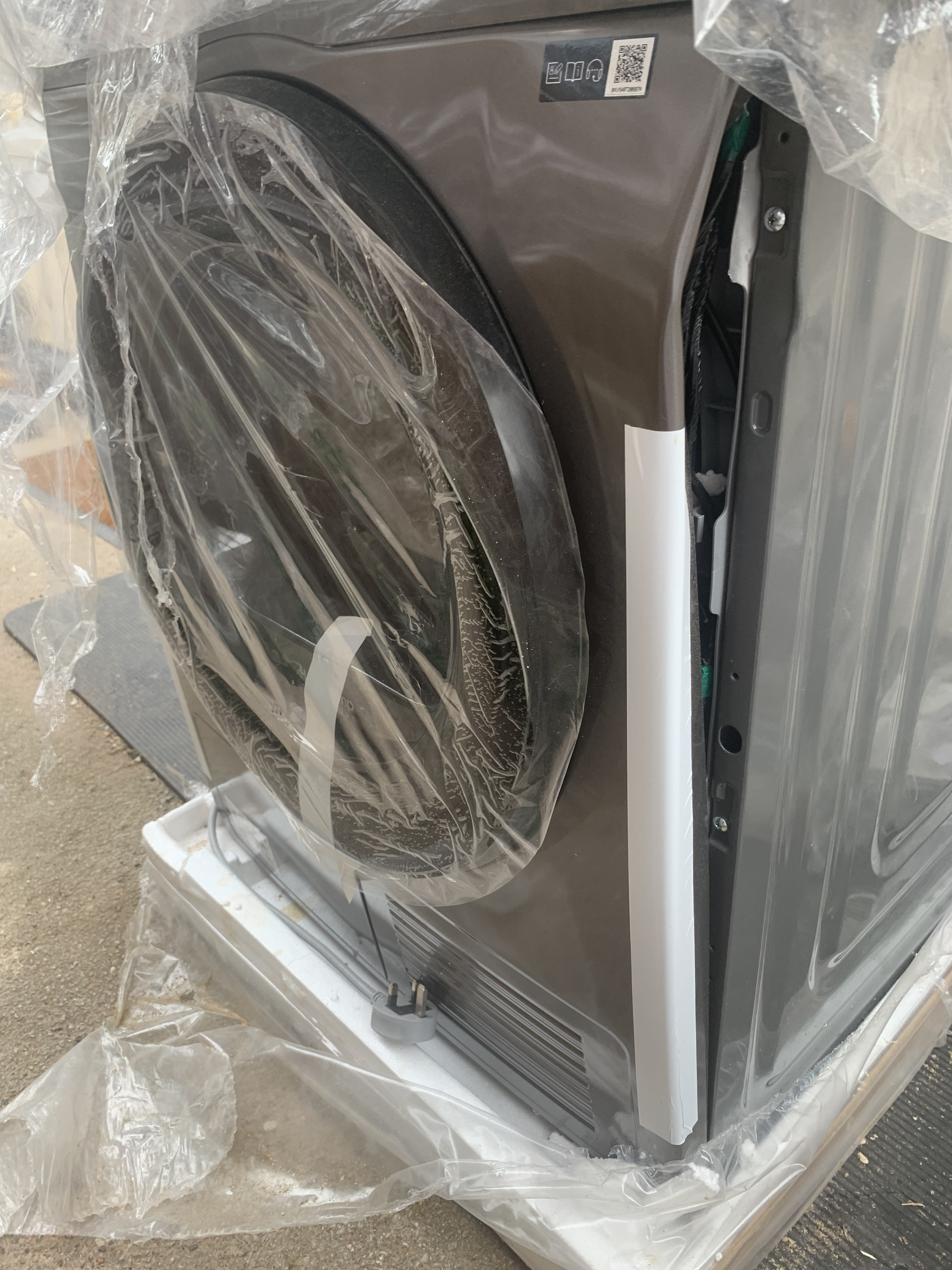 The utility was fitted last week and on opening the packaging the front fascia of the tumble drier is hanging off. It looks like it’s been driven into by a forklift.