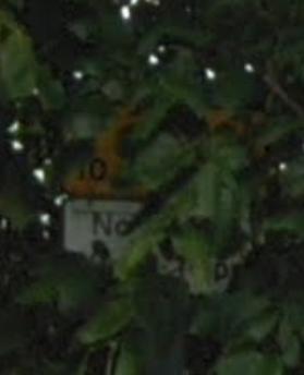 - a sign almost totally obscured by foliage,