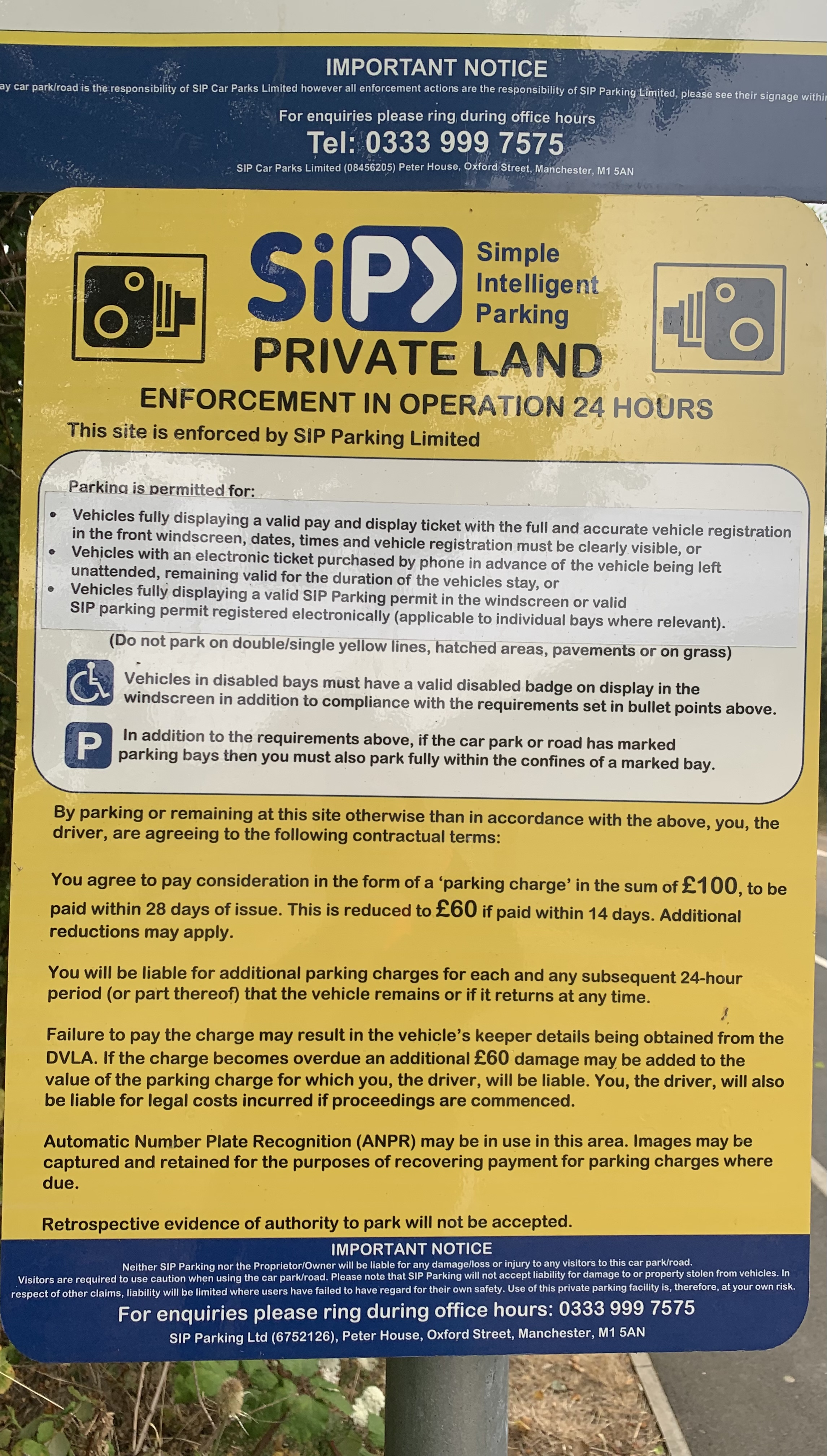 The first photo shows TWO different parking companies on it; namely, SIP Car Parks Limited and SIP Parking Limited.1