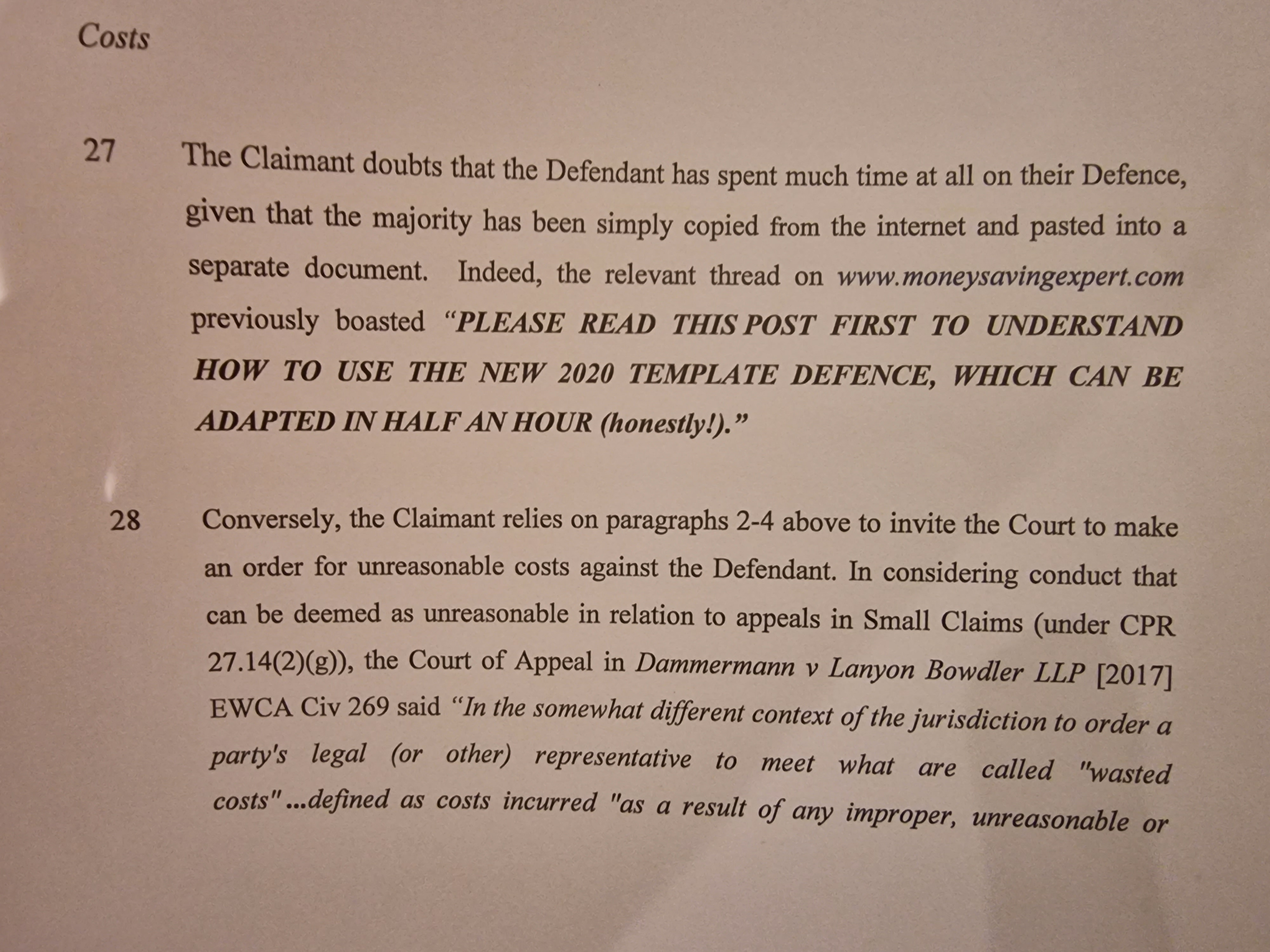 Im reading claimant's WS before my hearing on 15th Mar. please refer to item 27. is comment like this applicable ? ( of course use MSE- im not a legal expert.)