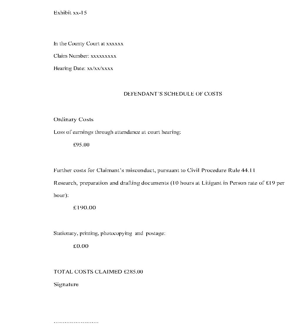 i have attached the Defendants schedule of costs. is it acceptable ?