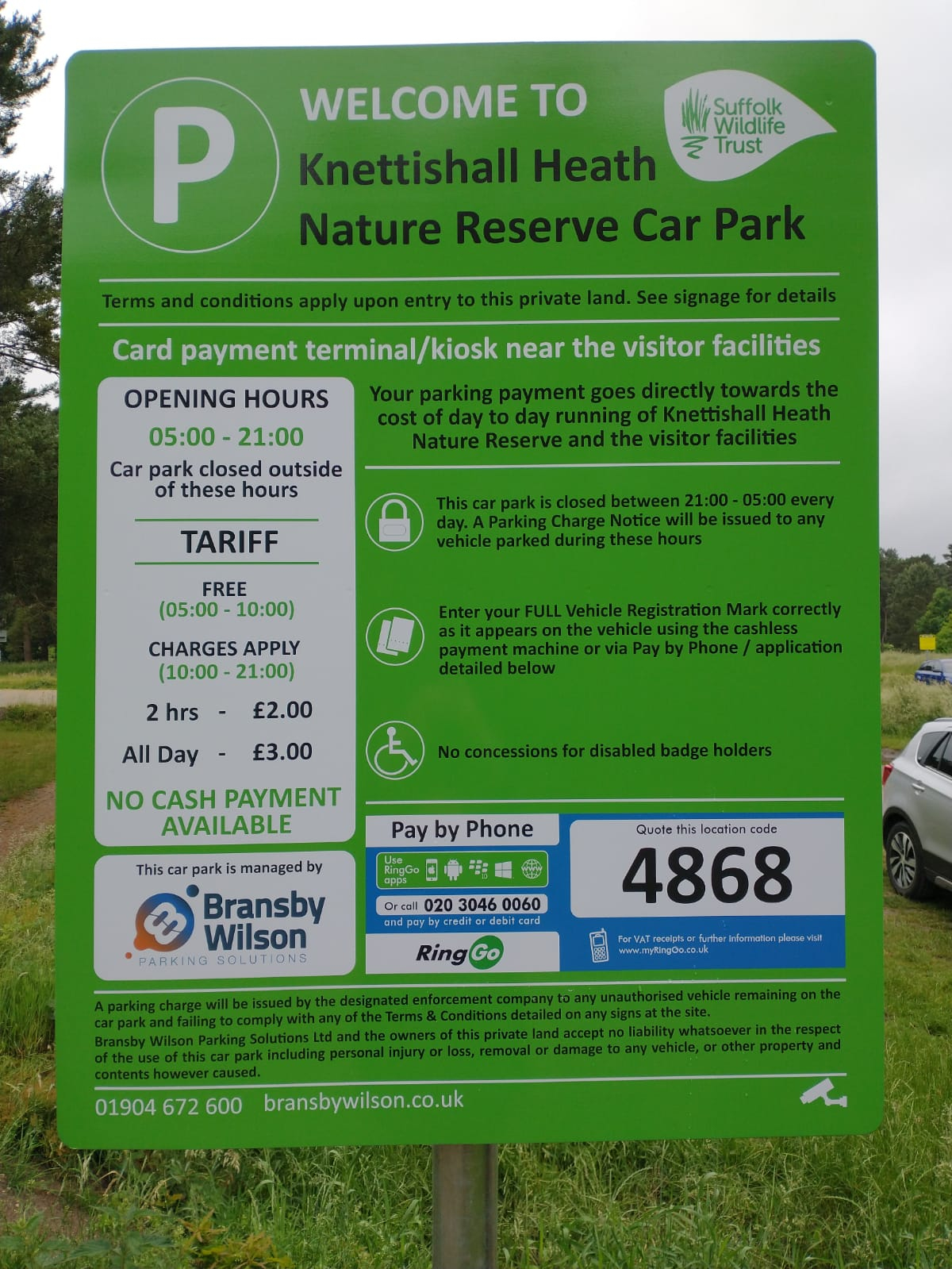 I recently got another £100 NTK through for a car that parked at a Nature Reserve. There are multiple signs up around the car park advising of a £100 fine yada yada, and the primary sign can be seen here. Tried to post a link but I'm too new.