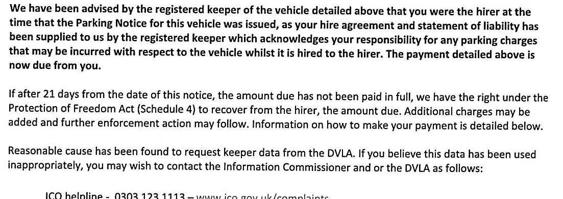 The NTK even tells them how to transfer liability, which protects the company, absolves them of all future liability and fairly gives the lessee/hirer the right to receive a NTH and appeal. Could have been done online in 5 minutes flat so I've no idea why they aren't doing this.