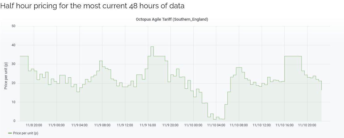 Having said that, I noted that this Octopus 'agile tariff' is aimed at those with Solar PV, Electric Cars, Immersion/Storage heaters or people that can shift their usage away from the 4pm to 7pm peak - which sadly counts this household out.