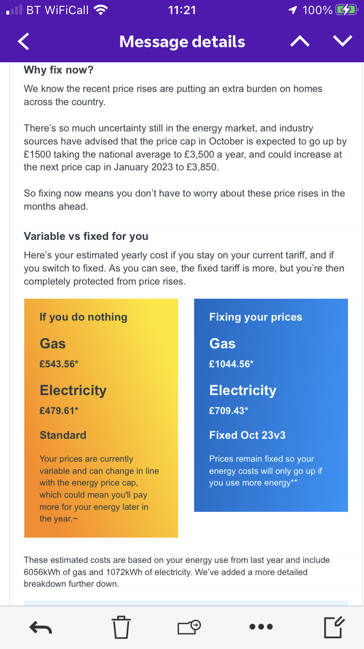 But they don't know what the rates will be until they are announced, and I don't believe they are allowed to "guess" at the rates, but yes, they could quite clearly state that the price is variable and could change in line with the energy price cap and you could pay more for your energy later, oh wait...What_time_is_it said:I have a BIG problem with communications like this.