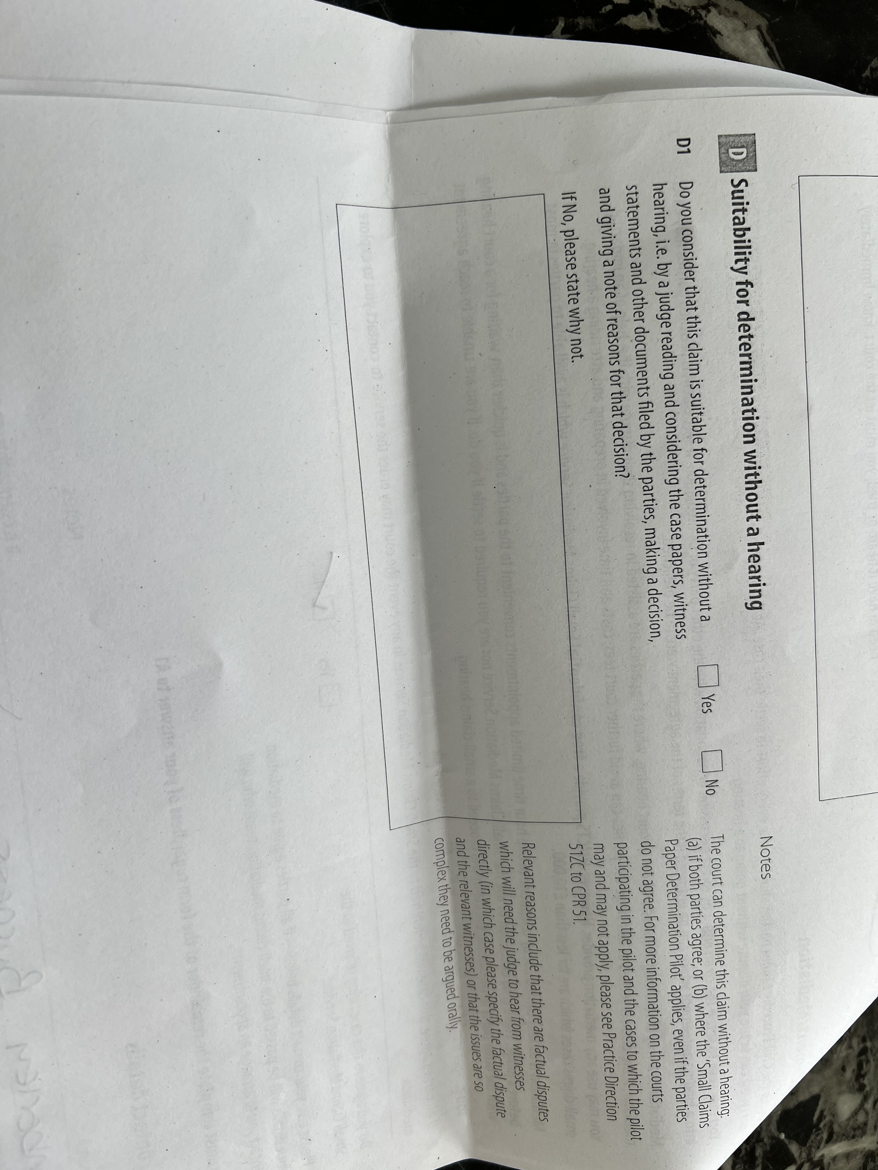 Just filling in notice of proposed allocation to the small claims track, looking at information on newbie thread but D1 suitability isn’t covered?