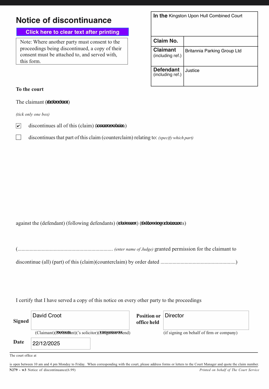 Hi, I never started my own thread, but I did read so many otther info helpful MSE forum threads; thank you. I was just about to send my Witness Statement to court (deadline 29 December 2025) when email came in that DCB Legal discontinued.