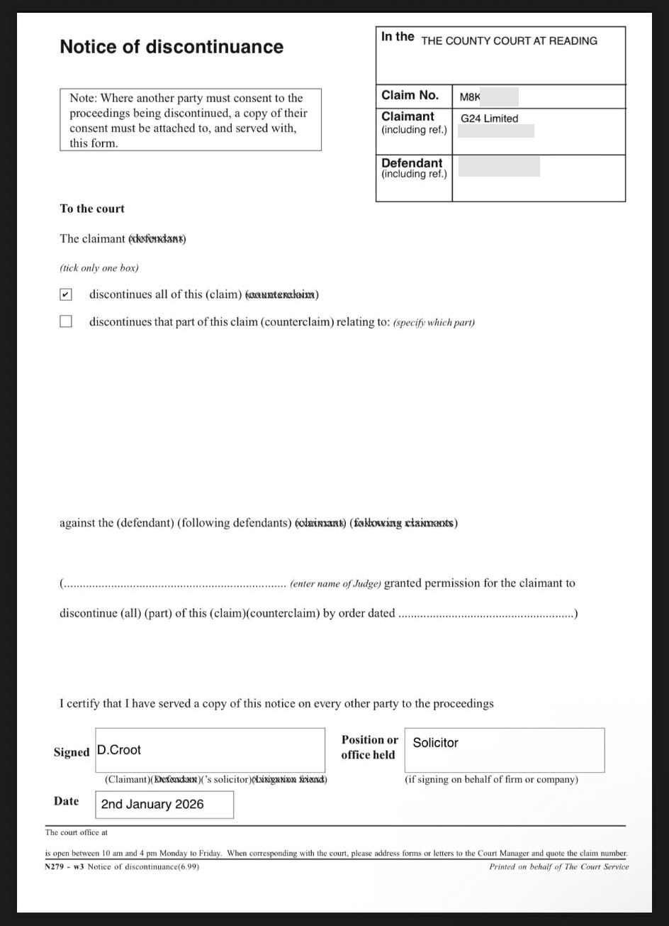 DCB LEGAL RECORD OF PRIVATE PARKING COURT CLAIM DISCONTINUATIONS