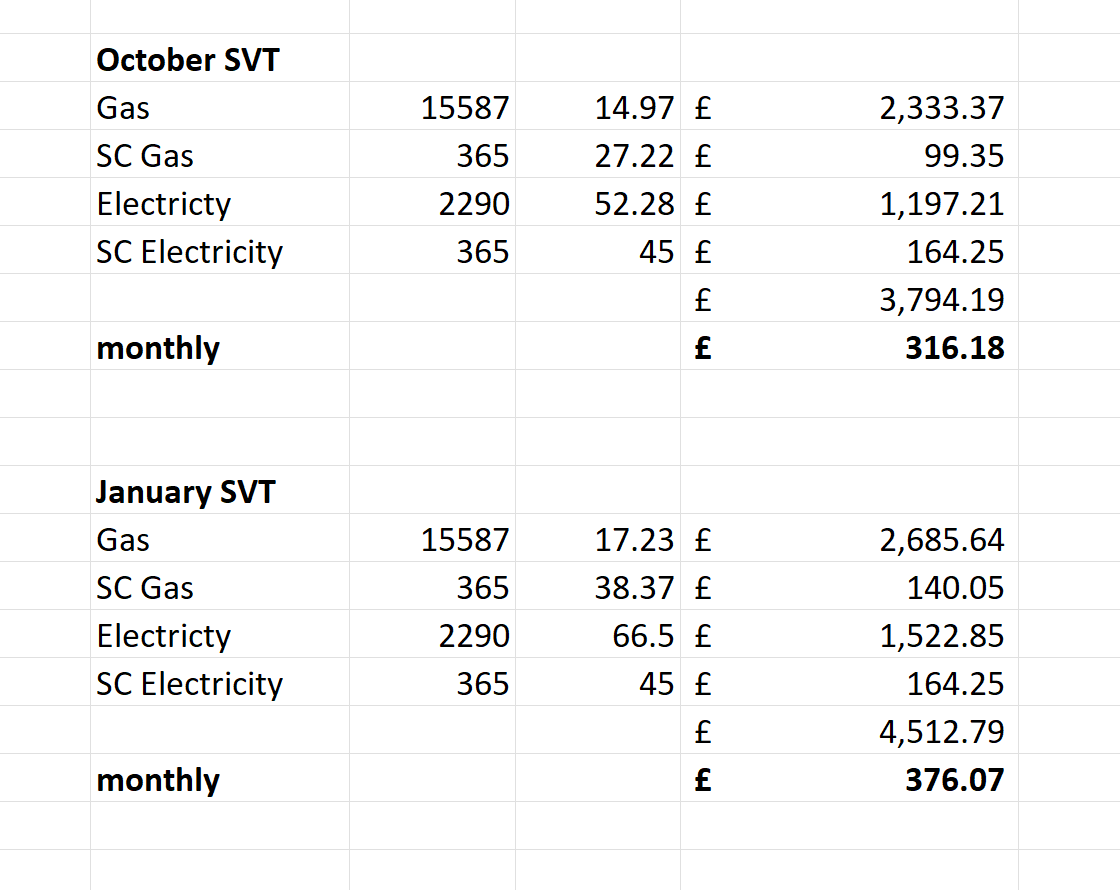 As you can see the increase for electricity is over £400, while gas is only £270.