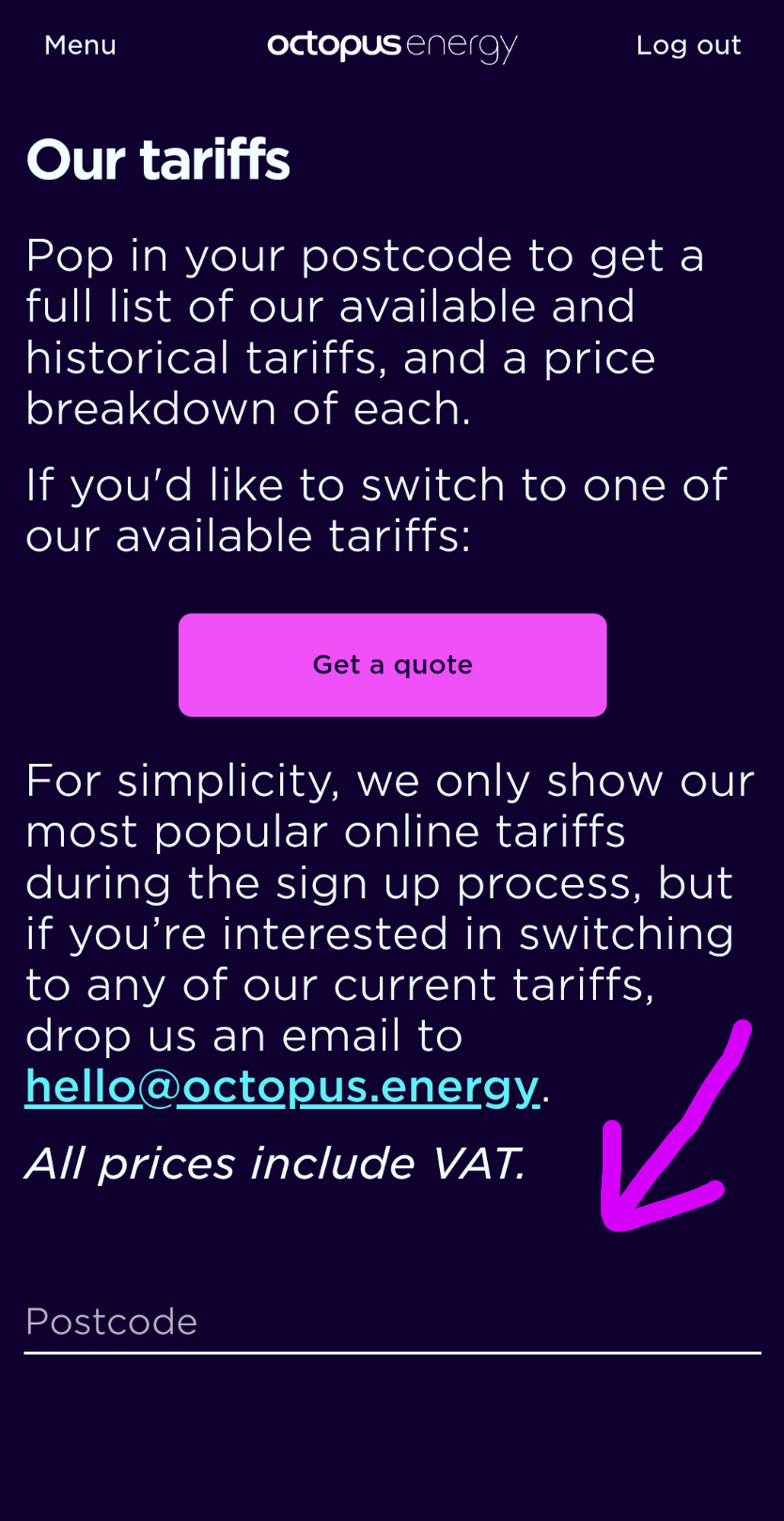 If I try that, I don't get a quote, but a page telling me it is unlikely to be worth switching suppliers at the moment and if you really really want to, phone this number and speak to us.CanNeverThinkOfAUsername said:If you visit this link: octopus.energy/tariffs/ and pop in your postcode you will see a list of tariffs (don't click get a quote, just put your postcode in). Every tariff has a single rate with one rate, a E7 rate for a Night and Day tariff, plus a rate for gas too, it all depends on what meter(s) the customer has installed.