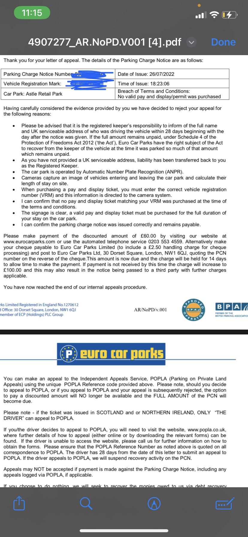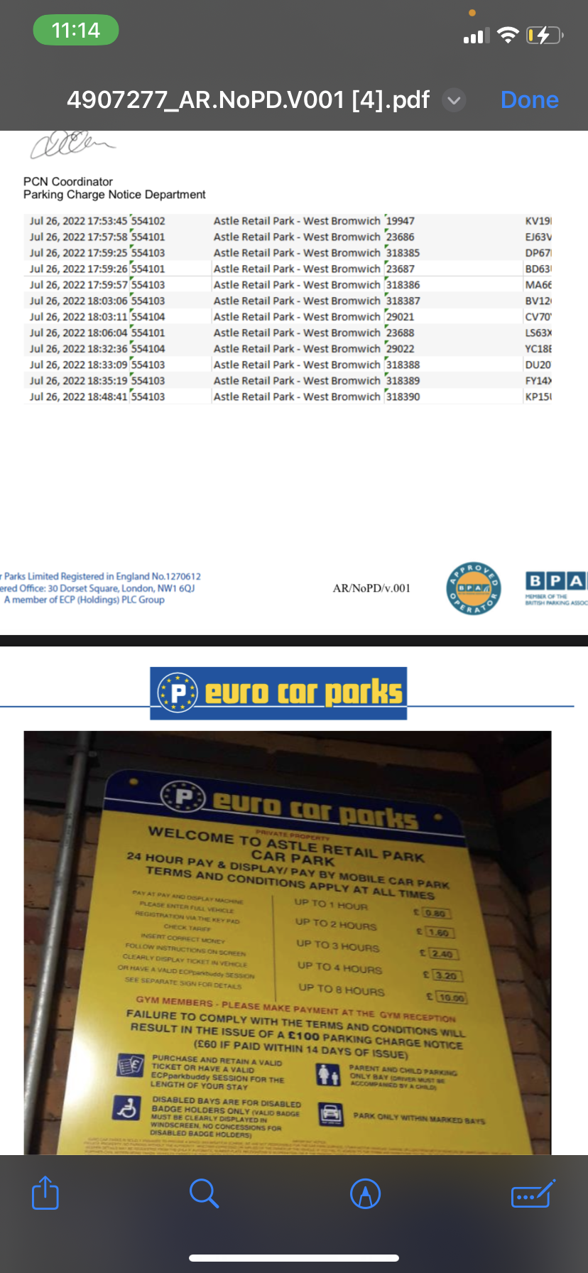 Further to my post i have now received a respinse back from euro cars after appealing and asking for a redacted list of registration number. I will attach photos please can you advise what i do next as the second number plate on list is ours which clearly states we bought a ticket ?!
