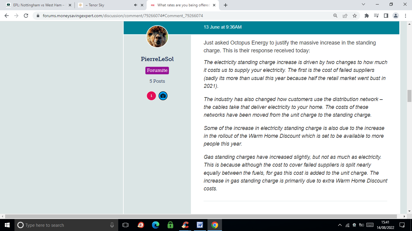 What I cannot understand with the SC and the price cap is that you are charged a different rate depending on your method of bill payment, I thought the cap was supposed to limit the price at the maximum the energy companies could charge for unit and standing charge price,. It seems this is not the case and should be explained properly by Ofgem. The energy companies will find any way they can to increase their disproportional profits.0