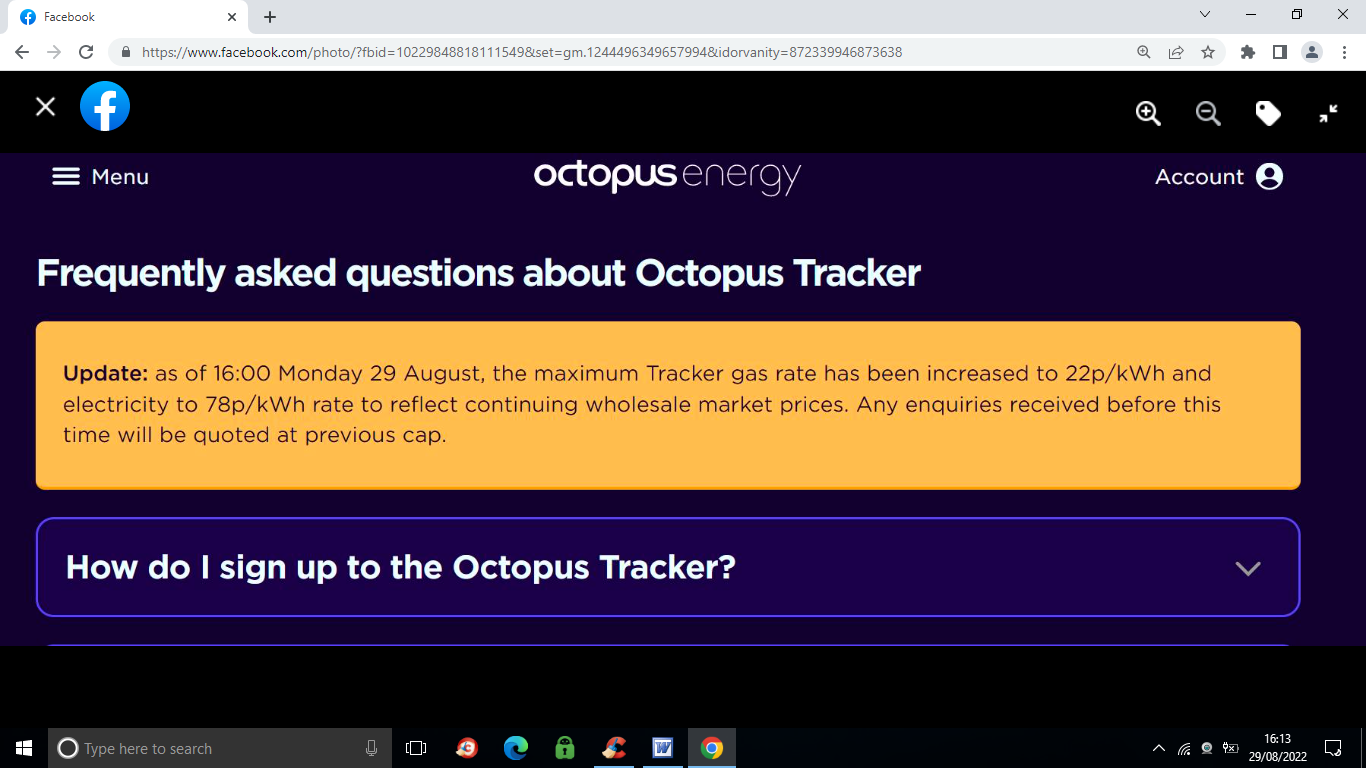 Octopus Tracker rates changed as of 1600 hours today for new switches/signup enquiries