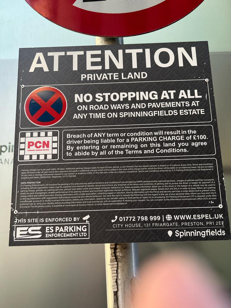 ES Parking Enforcement Spinningfields, PCN for stopping