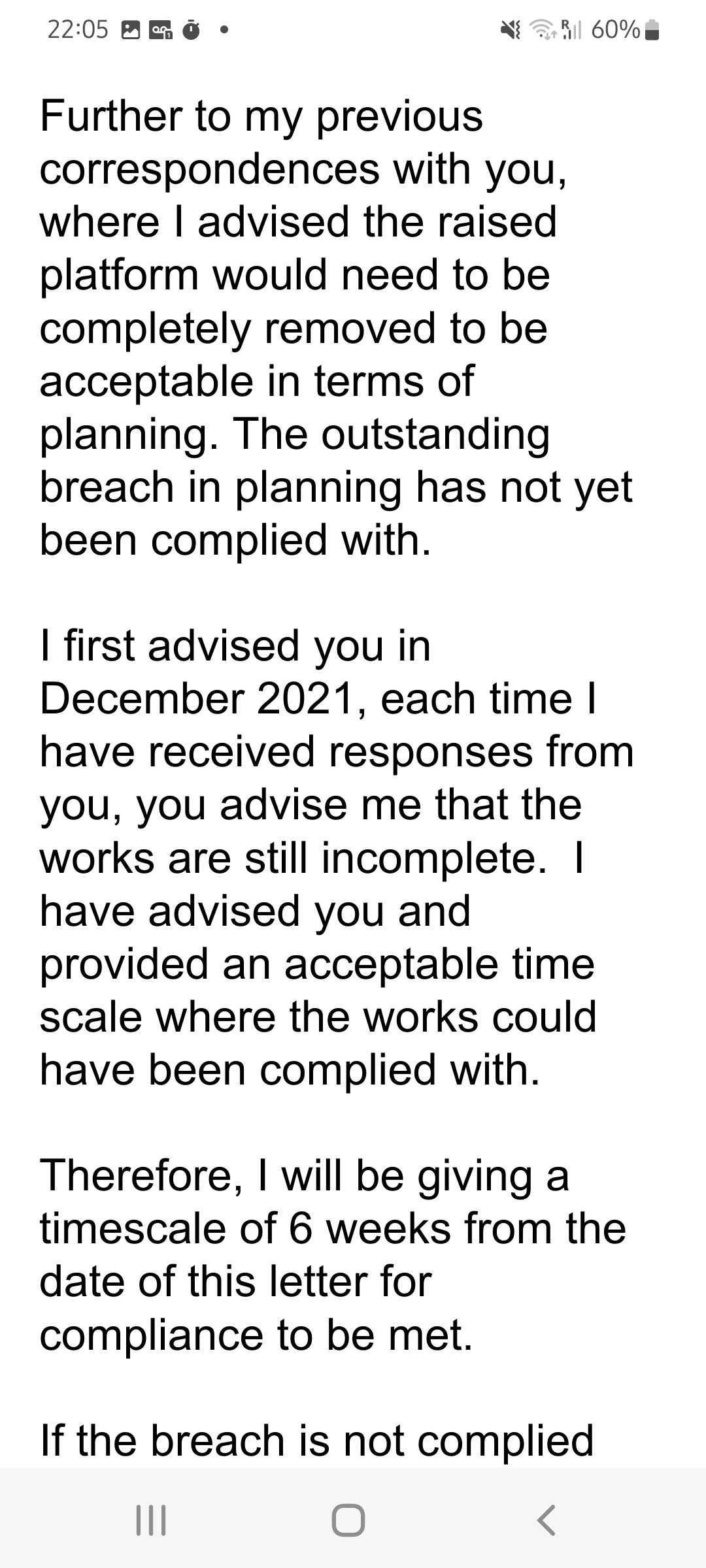5. We got a pre-enforcement letter regarding the decking which clearly states that the removal of which would mean it would then comply (see previous post)