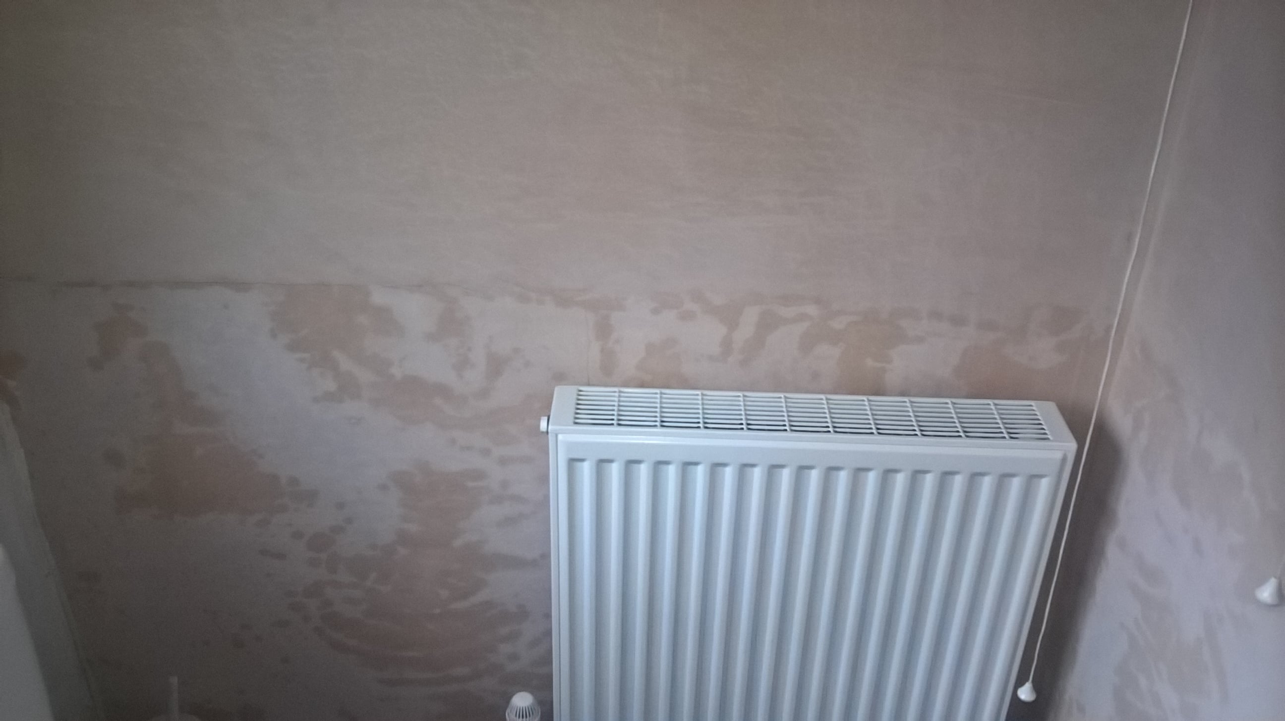 Moved into a council property 3 months ago. All walls and ceilings were newly plastered quite a while before moving in. However one wall in the bathroom is like this still (see picture below).