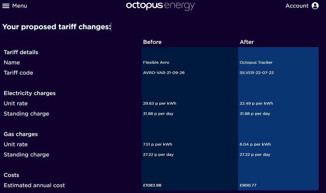Octopus provide quotes based on some kind of estimated rates which do not bear any resemblance to reality.Planeteer said:Hi all. Following advice from folks on here regarding Octopus Tracker (been an SVT customer to date), I requested a quote and accepted an attractive-looking switch offer. However, the quote given (with presumed ceiling rates) seems vastly different to one live on my account now. Do their quotes just provide illustrative rates or spot rates rather than the applicable max/ceiling rates?