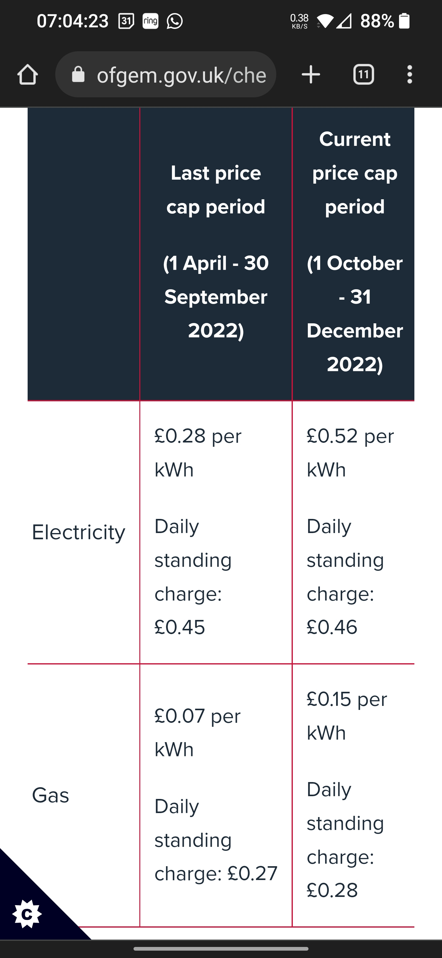 Those figures give a price for standing charge. I hadn't realised that had a cap. Mine , electric, is higher than the new figure shown above .0