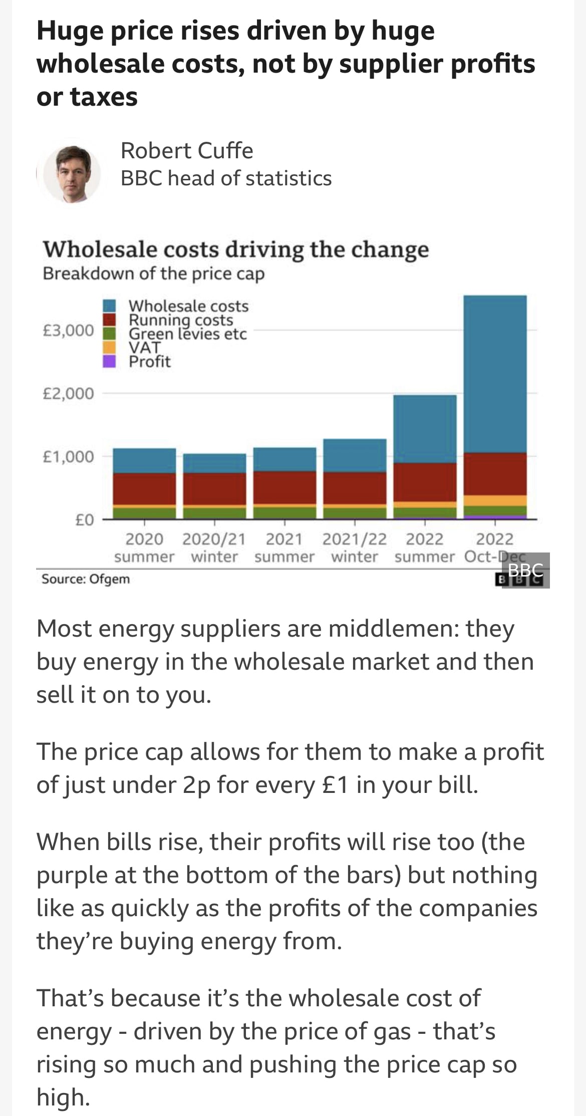 Yes, we all know the real reason, but when BBC also post articles like "British Gas owner Centrica and Shell have posted huge profits due to rising energy prices, as UK households face even higher energy bills.", you can understand why people are confused over the whole situation.