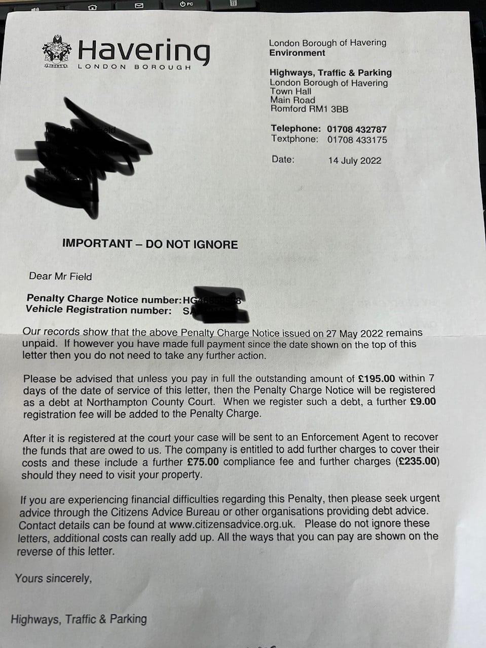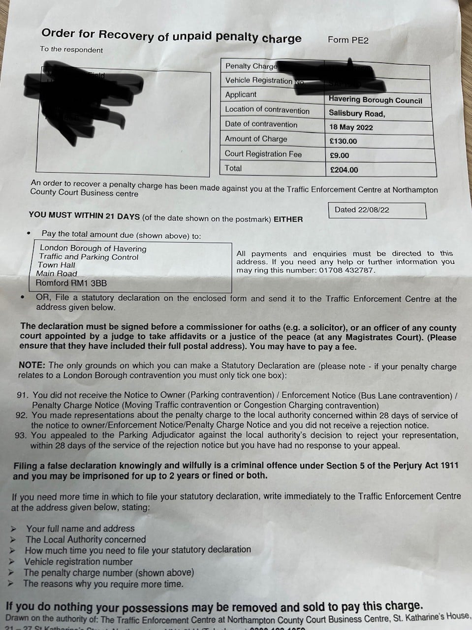 Pepipoo will advise about the TEC7 and TEC9 forms needed (I think?) to make an OOT declaration to wind their necks in and set it back to square one.PRIVATE 'PCN'? DON'T PAY BUT DON'T IGNORE IT (except N.Ireland).