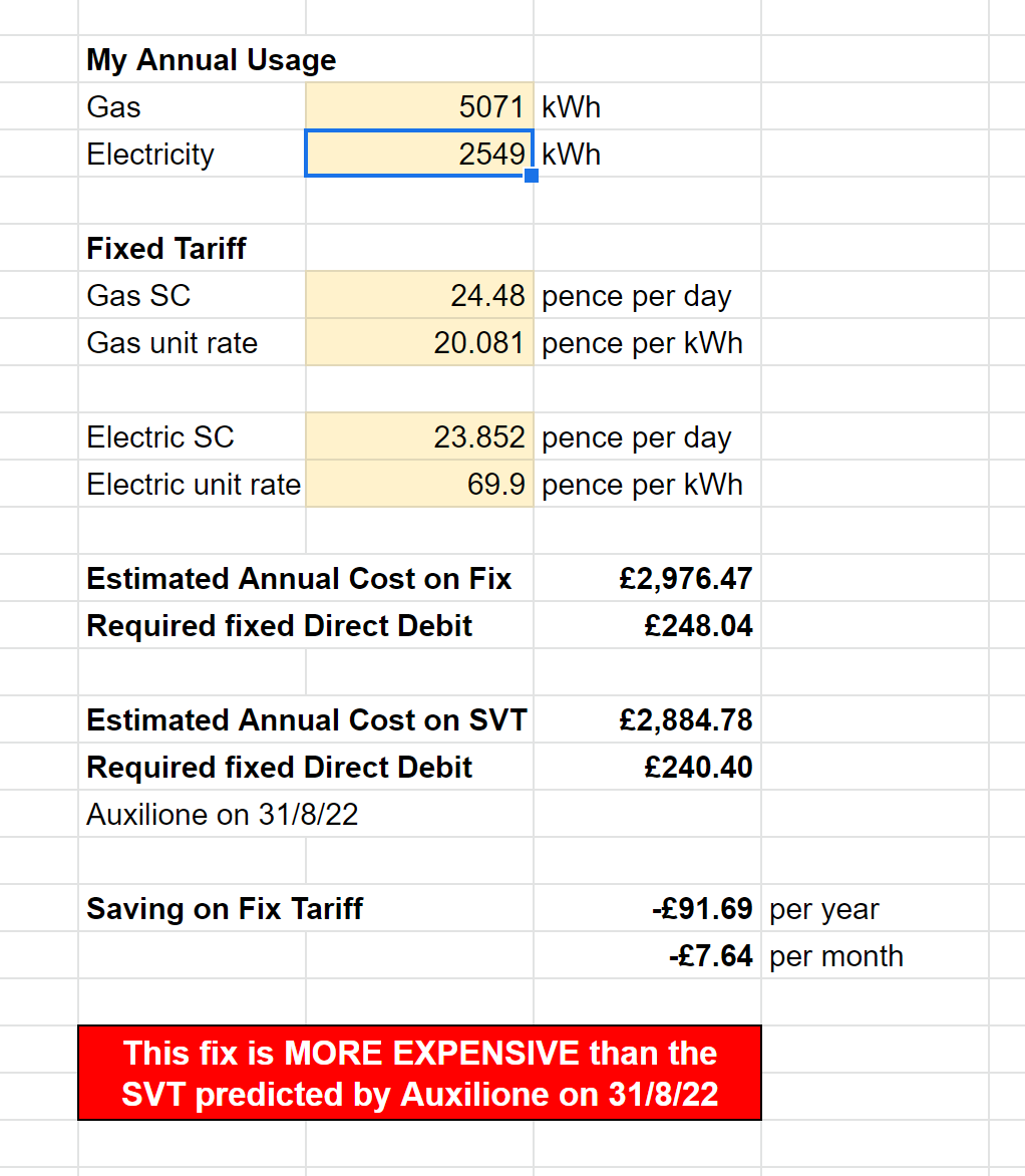 The predictions have come down a lot in the last 3 days now. Nobody knows if that will continue, or will go up again. The same exercise based on Cornwall Insights predictions from last Friday would show a saving if you take the fix.
