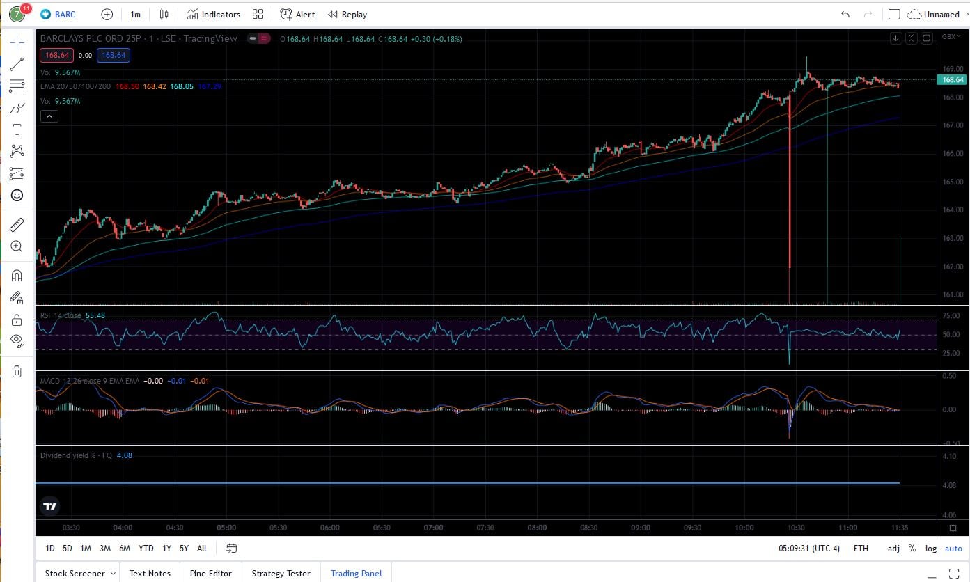 at 3:30 the share price was up again to 168.60 with a sale volume of 457.9k