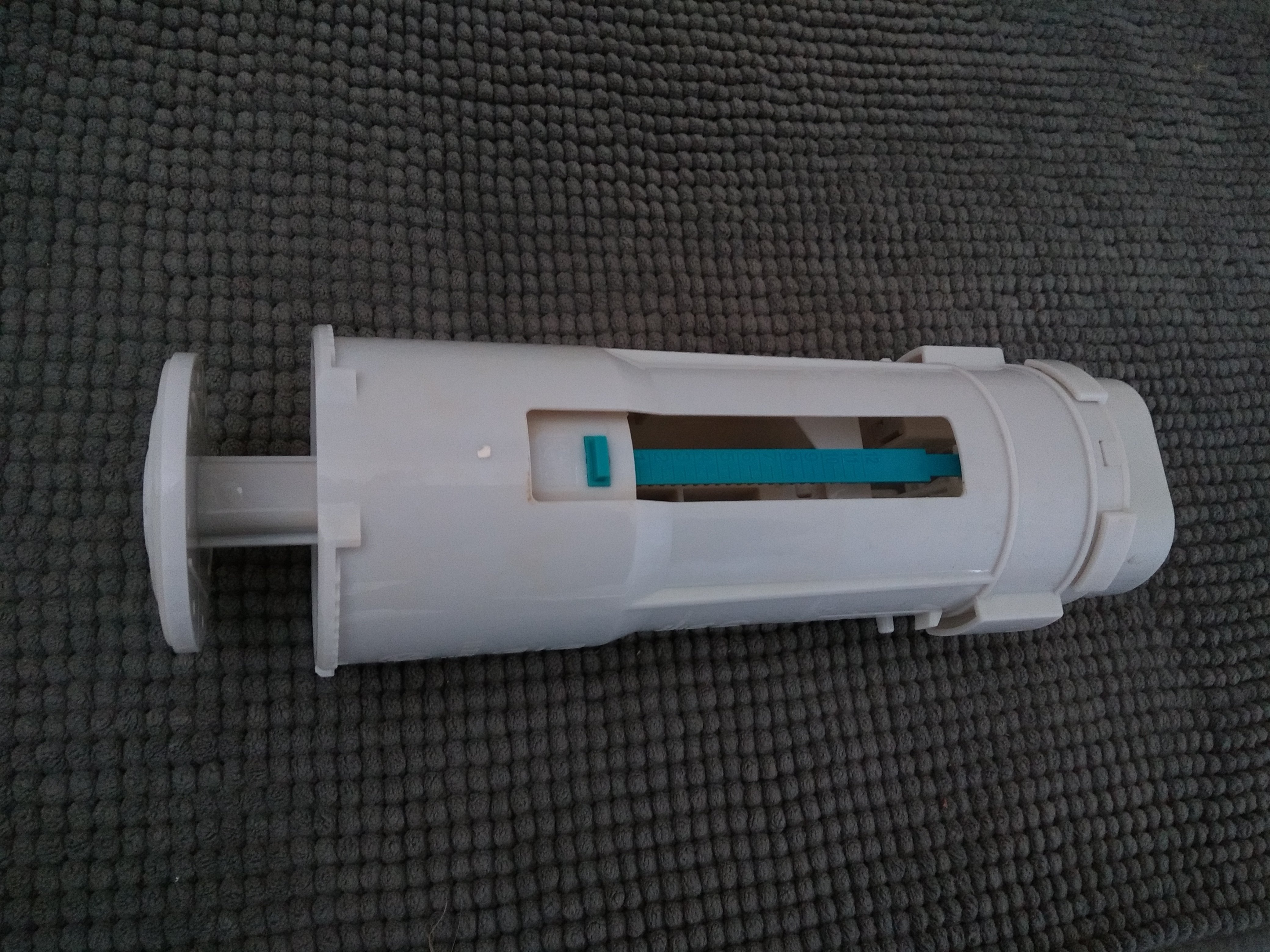 This is the mechanism from a toilet system. The section on the left should drop down under its own weight after the flush button has been pressed. Recently it has been sticking in the raised position so that water flows continuously. Sometimes pressing the button again causes it to drop and other times I have to remove it from the cistern to shake it free.I'm in a hard water area so I assume it is scale building up. Squirting descaler in anywhere I can seems to work for a while, but after a few hours or days it starts sticking again.