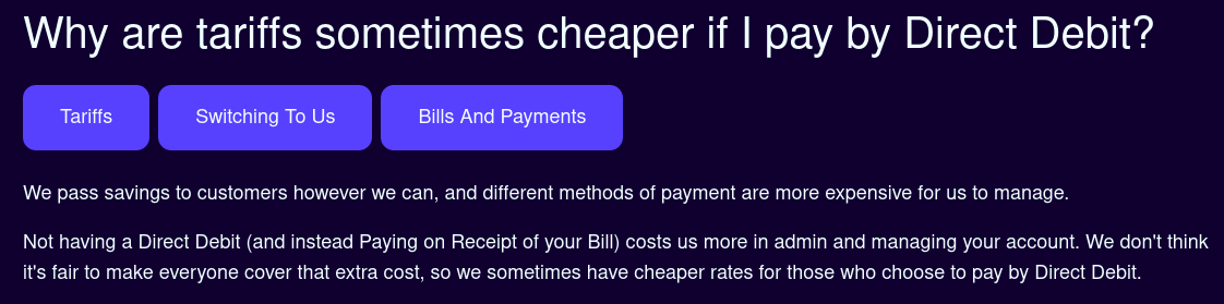 SJMALBA said:Deleted_User said:Variable DD is usually treated the same as fixed DD for these things.From Octopus' updated(?) FAQ:Not sure what to make of the 'and instead paying on receipt of your bill' being linked to not having a DD??1
