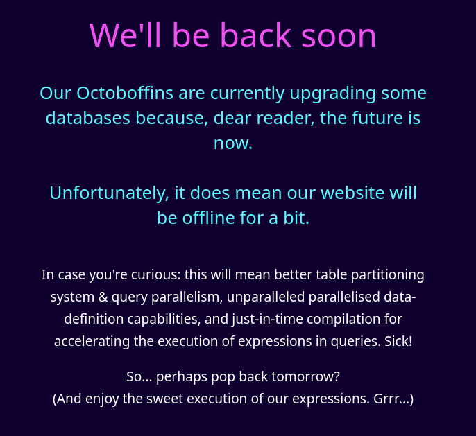It's just occurred to me I've had a couple of distractions the last few days, including following the Time Team dig this weekend, and haven't once checked for Octopus communication outside of my e-mails - even missed the update on their blog, until someone here posted it. It's been rather nice, actually!0