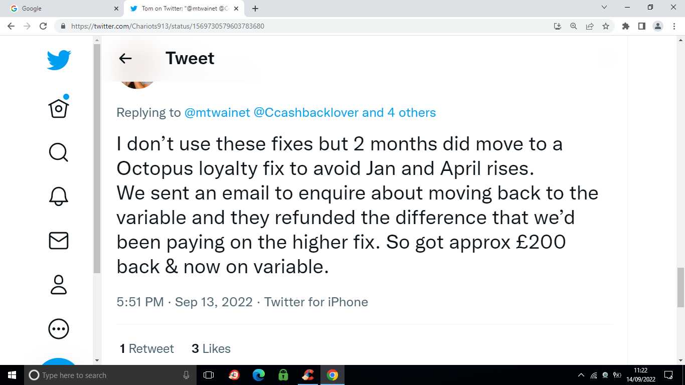 Suz239 said:I haven't heard a thing from them either. I fixed my rates early September before the government measures were known so I believe I could change to a cheaper tarriff. There's just no way of finding out what the tarriff options are and how the government price cap is being calculated through to me on a fixed tarriff.... Might try to ring them tomorrow, hopefully I'll get through!