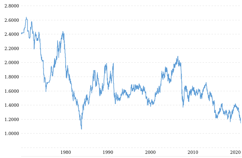 The trend goes back much much further than that.Although the current issue is just as much about the strength of the dollar as much as the weakness of the pound.I am an Independent Financial Adviser (IFA). The comments I make are just my opinion and are for discussion purposes only. They are not financial advice and you should not treat them as such. If you feel an area discussed may be relevant to you, then please seek advice from an Independent Financial Adviser local to you.1 -
