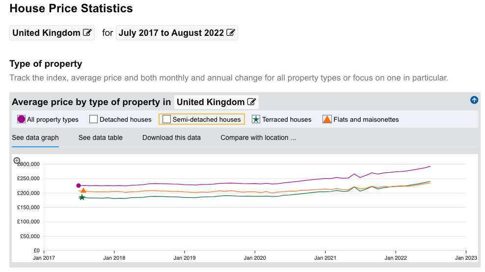 *Just to add that people aren't talking about the tanking of flat prices nearly as much as I thought. They have essentially flatlined and for the first time ever, this year terraced houses overtook flats in average price increase in the UK.